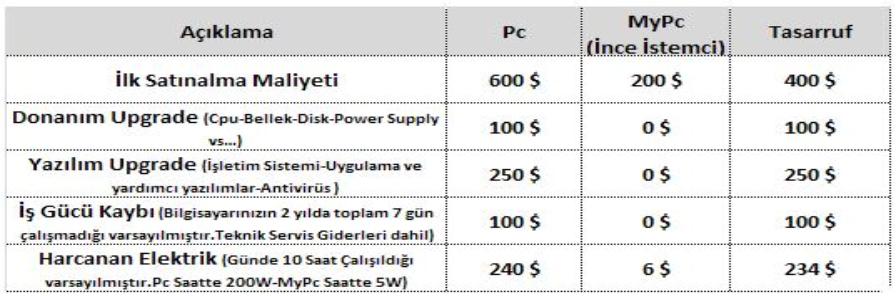 * Yukarıdada ki maliyet karşılaştırma listesi 2 yıl için hesaplanmıştır.